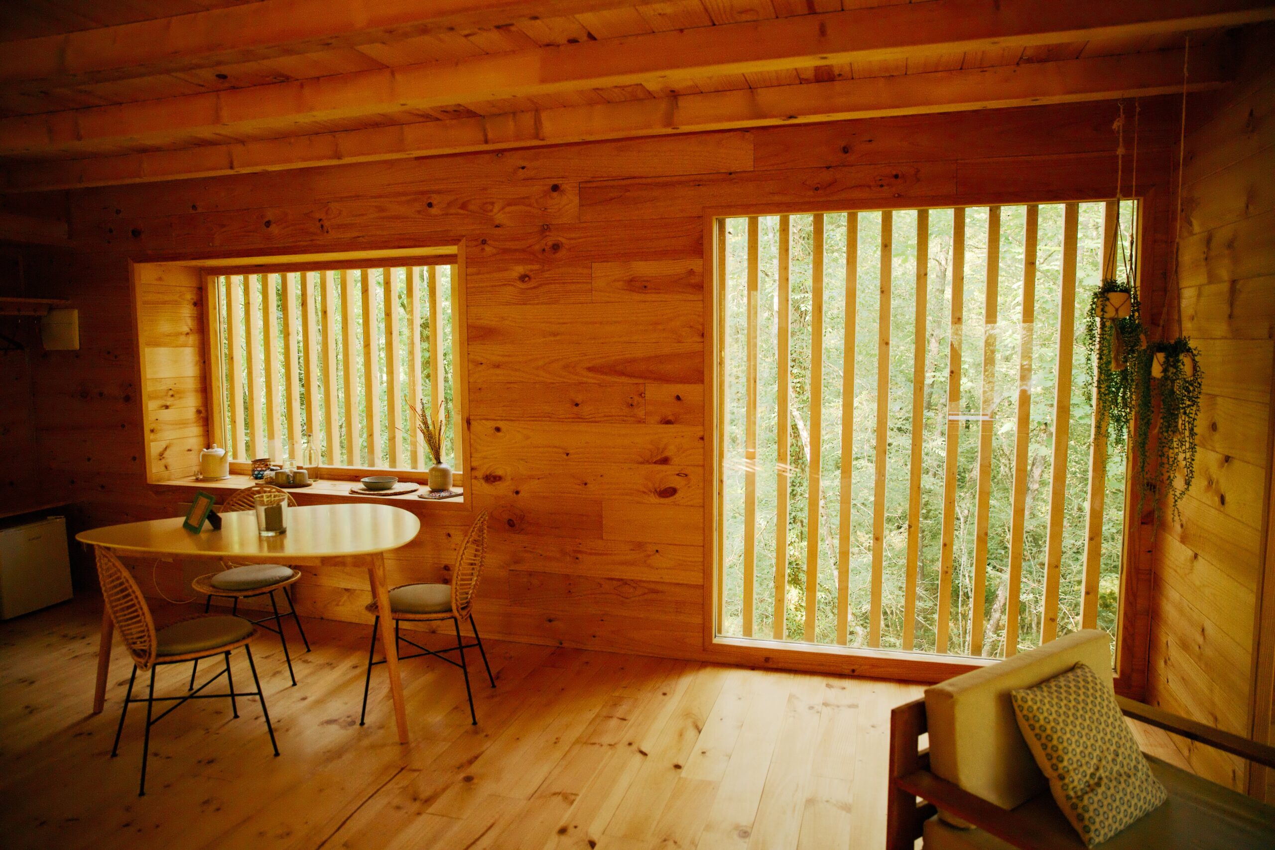 No se permite fumar en el interior de las cabañas, únicamente en la terraza.